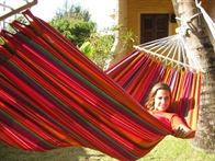 Trendy hammock in great colorful fabric - hammock with wooden spreader bars