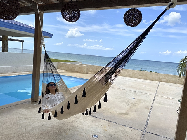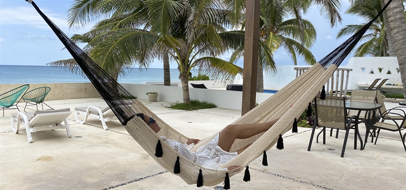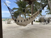 The Hamaca Coralina is ideal for one or two adults, comfortable and decorative, the ecru and black will give it a sophisticated accent wherever you put it. Made with soft cotton, exclusive design by Cielo Hammocks