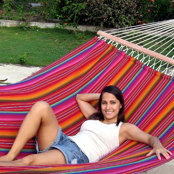 Nice and decorative hammock. Beautiful and welcoming hammock.